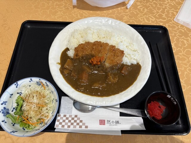 食堂イチオシの唐揚げ定食とカレーライストンカツをトッピングを注文しました