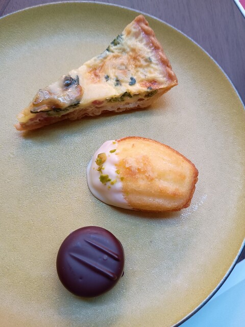 次に出てきたのは、3段スタンドの豪華なこと。添付している写真を見ていただければ説明は要らないですね。別皿にサンドイッチやミルフィーユなどもサーブされました。一つ一つの量は少ないですが、あまりにもたくさんの種類があるので、ゆっくり食べていきました。最後に出てきたデザートはシャインマスカットがたくさん入っており、これでお腹のキャパも限界という感じでしたが、さらにクッキーやチョコなどを持ってこられて、好きなだけお取りくださいとのこと。滅多に来ないだろうと思って、頑張って少しだけ頂きました。飲み物のほうは飲み放題だったので、ウェルカムドリンクの後、紅茶を飲んで、アイスカプチーノも頼みました。一流ホテルに入っているお店の飲み物なので、どのドリンクもとても洗練されており美味しかったです。