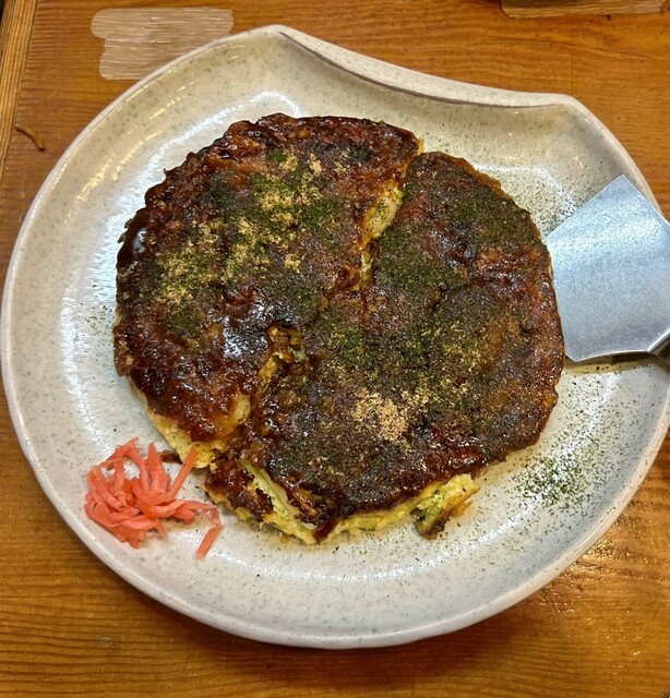 人気ランキングでは①平焼き②焼きそば③厚焼きですかね。しかし我が家では断然〝肉入り焼きそば〟がダントツNo.1。今日も一つは持ち帰り。