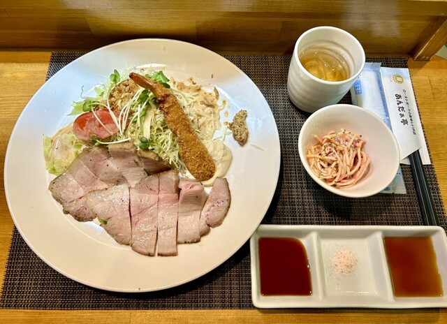 ランチの選択肢も色々とありましたが、今回はお店お勧めのローストポークにエビフライが付いたセットにしました。