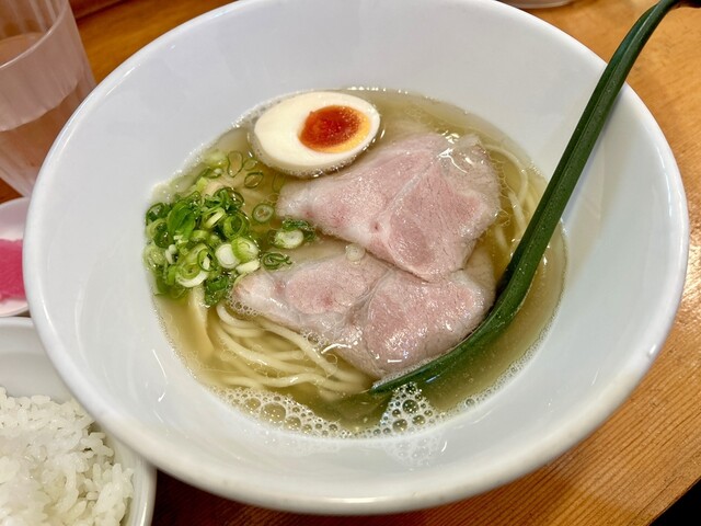 まだ暑さが厳しい時期であったので、さっぱりと塩ラーメン+ランチタイムサービスのご飯小