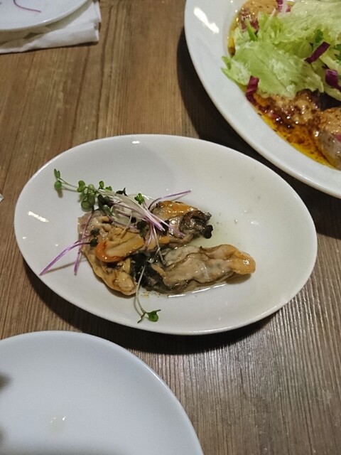 シーザーサラダは写真の見た目よりボリューミーです。お肉の5種盛りをいつも頼むのですが、前回はフライドポテトをトッピングでお願いしたのですが、せっかくの揚げたてが肉汁でポシャっていたので、今回は別に頼みました。牛レバーの香味ソースがけと牛ハツのたたき風もいつも頼む美味しい逸品です。パンを結構おかわりしちゃうんですよね〜。勿論ワインもめちゃくちゃ進んじゃいます。何時もながら美味しかったです。週末は予約必須です。