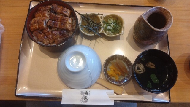妻と息子はひつまぶし上を頼み、私はひつまぶしミニのさらにご飯少なめを頼みました。