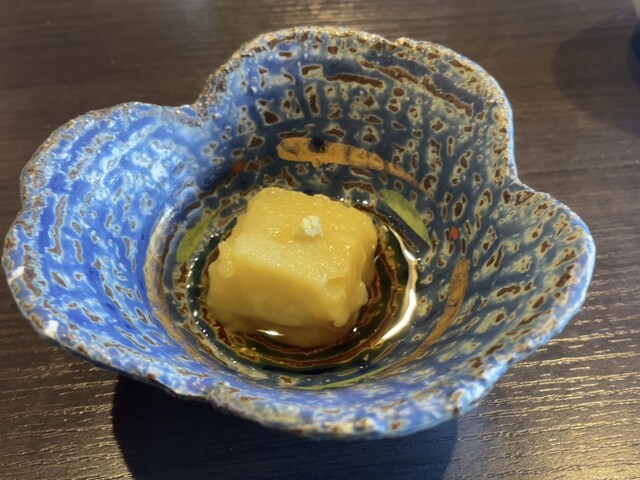 先付けは自家製のさつまいも豆腐。茶碗蒸しや揚げ出し豆腐のあんかけもあります。
