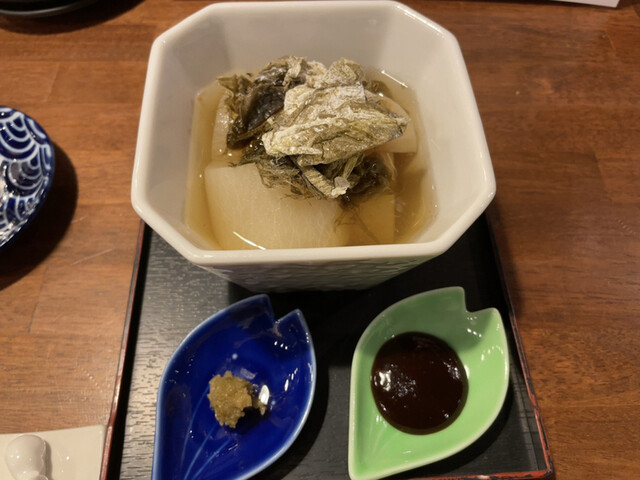 お通しは胡麻豆腐となます。里芋の煮転がしもいただきました。