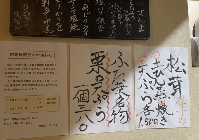 ふと横を見ると貼り紙が…。店主手書きのお知らせです。達筆ですね。内容は「御膳料理変更のお知らせ」嗚呼ここも遂に値上げかぁと思いましたが、値上げをせずに内容変更とのこと。