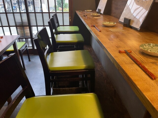 平日の夜18時30分過ぎ、テーブル席は既に埋まってましたが、カウンター席にはまだ少し空きがありました。