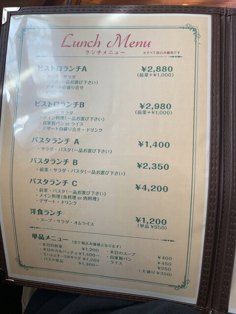 休日のランチタイム、お客様でほぼ満席です。空いているテーブル席に座ってメニューを拝見。って言うかここのランチメニューはほんとずーっと変わらない。もう20年くらいは同じなのではないかなあ。