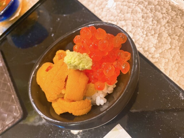 ニシン刺身が凄く甘味を感じましたね。私は海の甲殻類、貝類が大好きですが逆に旦那様は好きではなくて、たまに剛士さんが水槽の中の貝を捌いて貰いたい時にお誘い頂くのですが私は直ぐに便乗してしまいます。今日は ツブ貝とサザエでした。またこの前のウニご飯が食べたかったけど、今日は殻付ウニが無かったので代わりにトロタクを注文。何と野原スペシャルで!満足です。