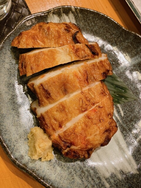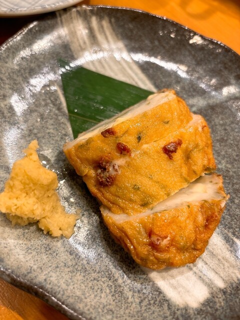 熊さん自家製の蒲鉾。カニの身たっぷり、あおさの香りたっぷりで蒲鉾と真丈の間くらいな食感かな…美味しかったです。