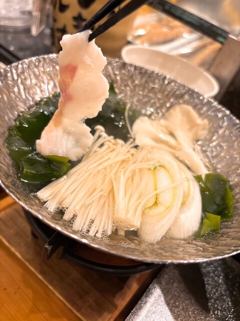 豚シャブは付けタレの中に何か入ってるなぁと思ったら とろろ でした。とろろを肉で巻き込む様に食す。う〜!美味しいです。on theクラッカーの自家製柿バターは干し柿とカルピスバターで作り上げたそうです。王隠堂の柿バターよりチョッとサッパリしているかな。でも美味しいです。