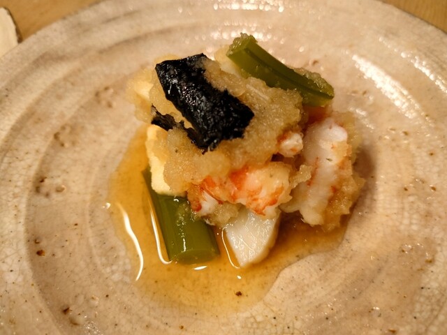 海老と貝柱の霙酢も酸味が優しくてあっさりで好きでした。