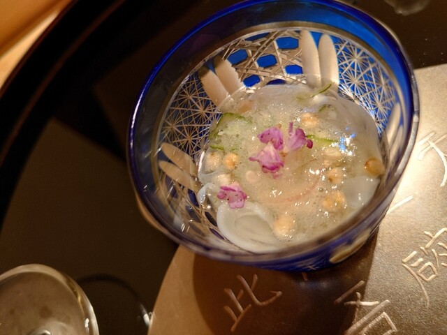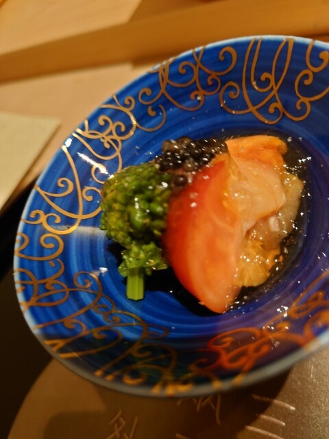 ○赤貝アワビ究極トマト菜の花キャビアベルガモットジュレ