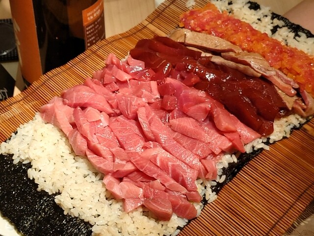 貸切の時のみ、常連さんの得意技〜鮪全部巻き!!