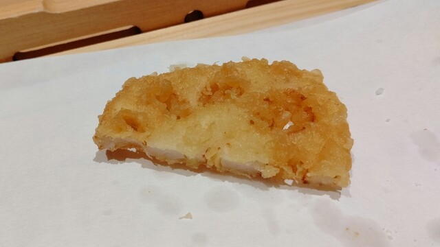 表面は強めで中はレアレアなピンクのホタテちゃん、カリッとしっとりが仲良くするれんこん、軽いクワイ、天婦羅も( ゚Д゚)ウマー