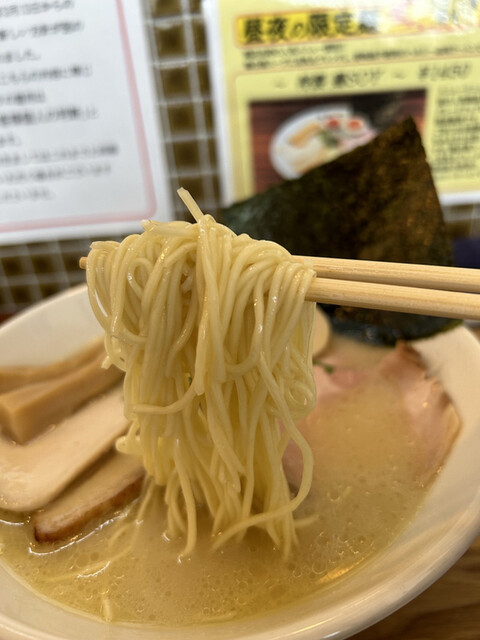 期待して食べると確かに美味しいのですが、食べ始めは少し、鶏白湯なのか豆乳なのか分かりませんが、独特の癖が有り、久々に食べて少し違和感が(^^;;