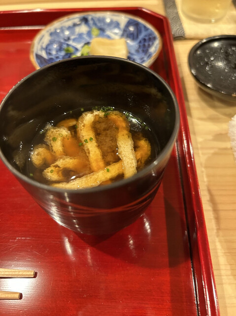 天ぷらを揚げる北川店主の所作に目を奪われつつ、提供された天ばらと天たまご飯を頂きましたが、歯切れの良い天ぷらの美味しさもさることながら、全ての料理に対しての拘りが有り、その味わいは格別に美味しかったです(^^)♪