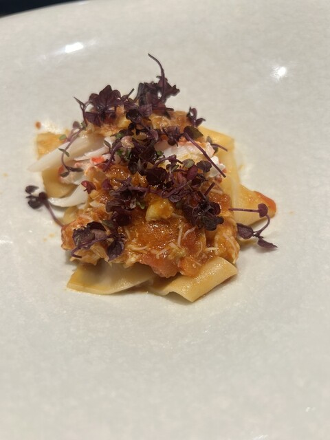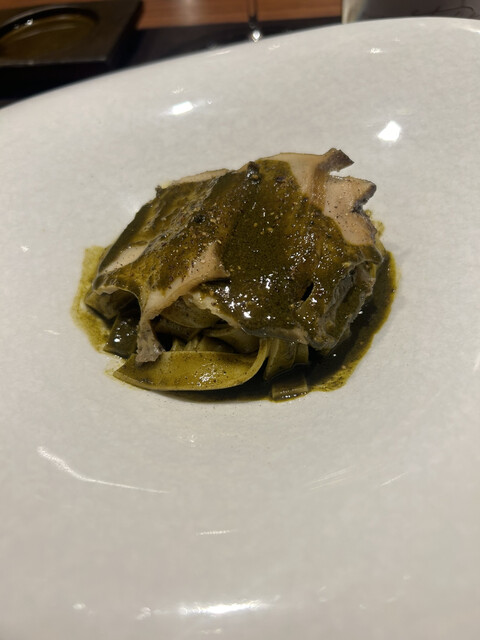 そうかと思えば、鮑を丸ごと使い、ふんだんにかけられた肝ソースで頂く、打ち立て麺にソースの絡みも最高で、和の趣きを感じる美味しいタリアテッレを堪能させて頂きました♪