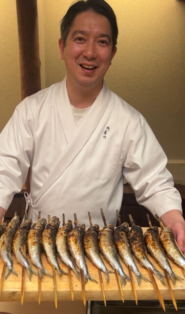 前回は囲炉裏前の席でしたので、大将以外のお店の方の印象は余り無かったのですが、今回は入口側の席に座り、多くのお弟子さんが厨房とカウンターを行き来するのを見れたのと、女将さんがこと細やかに、お酒のおかわりや料理の説明などのおもてなしを受けて、改めて美味しいお店にはやはり大将を支えるスタッフがいてこそなんだなと感じました(´∀`)♪
