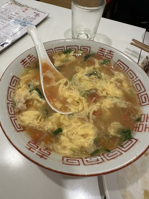 中華スープに小麦粉のモチモチが入っていて、知ってるすいとんのアレンジっぽくて安心する。〆。