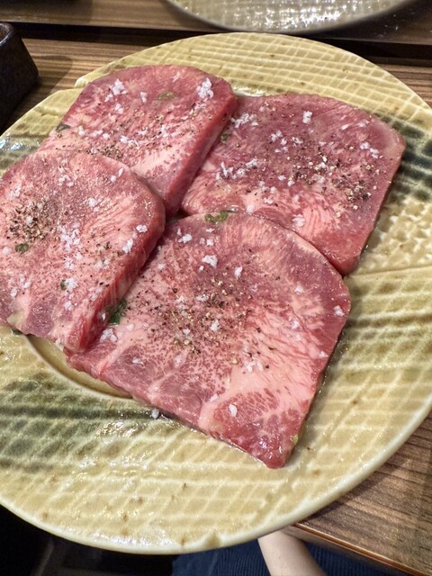 タンのカルビ部分?と珍しいメニューで気になり。「焼けば焼くほど美味しいのでよく焼きで」とのこと。実際はタンよりも筋感があって噛み応えがある。塩胡椒の味付けが濃いめだけど、噛めば噛むほど味が出てきて美味しい。