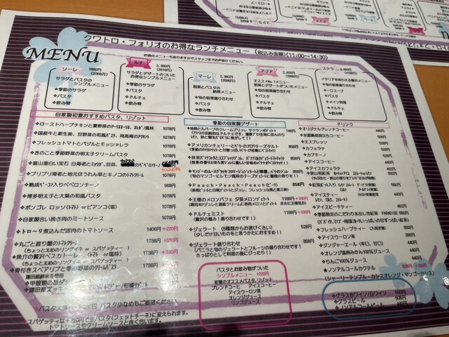 パスタは種類も多いうえに、季節の食材を使ったパスタが次々に変わるので月2回行っても全く飽きることがないです。