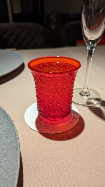 オープン時間に店内に通されると、個室ではないですが、お部屋にテーブル2席で、結局、もう1つのテーブルにはお客様がいなかったので、実質、個室状態。