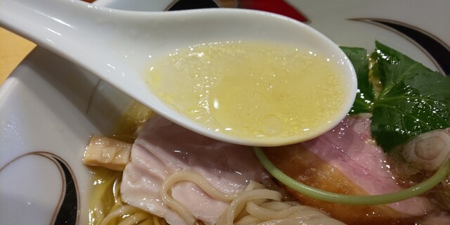 「紫 くろ㐂」以来の醤油。鴨清湯から打って変わって、やや白濁している。ってか、背脂?