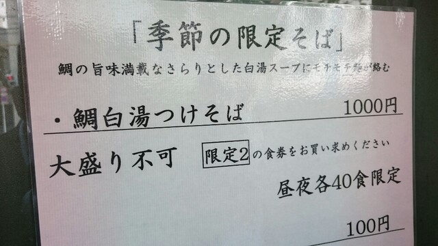 限定で鯛やってるってんで、3ヶ月ぶりくらいかなぁ。