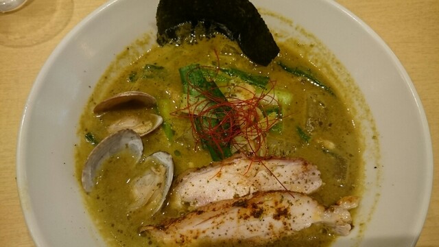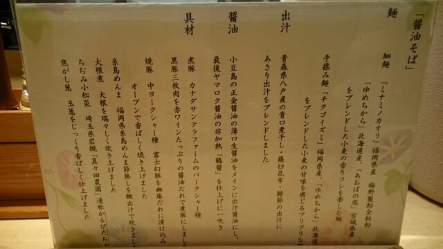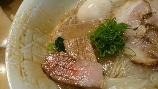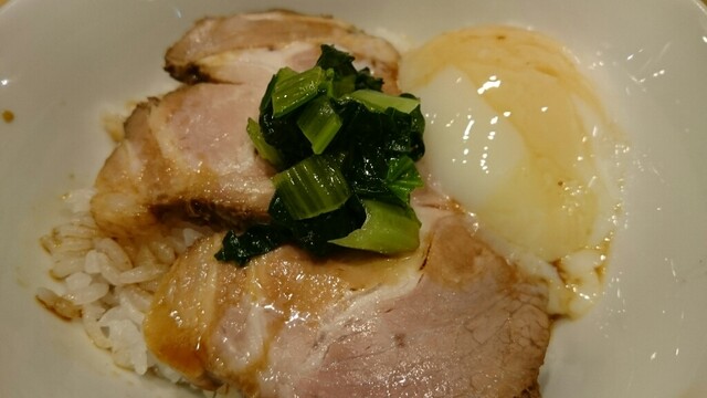 麺もスープも様変わり。やや太くなり、加水率が更に下がった麺。ゴワゴワです。もう少し啜り易い方が好み。ただ、小麦の薫りはパワーアップしてた。スープは、角がなく、超優しい口当たり。蘊蓄だと3種の鶏、鴨、豚、昆布の出汁らしいが、全てがまとまり1つのコスモスを形成。口のなかに旨さが広がる。ややオイリーだが、鶏油が旨いのでゆるそう(笑)。スープ量が後1.3〜1.5倍あったら完璧。