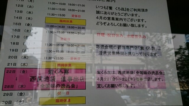 まずは、紫くろ喜が終了し、残念です。