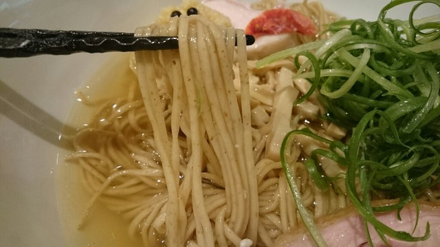 出汁感たっぷりのスープに、低加水パッツンパッツンの全粒粉入り細ストレート麺(こんなに黒かったかなぁ?)。