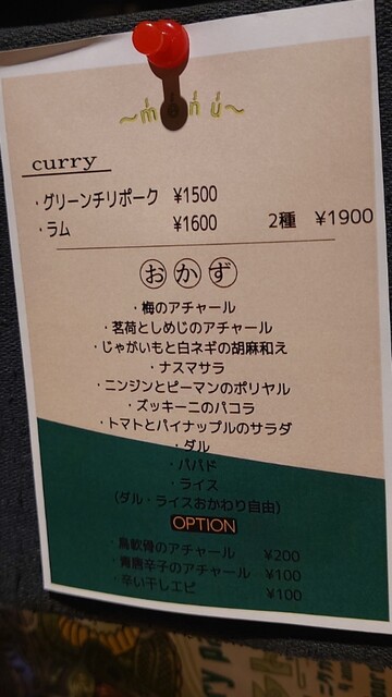本日は、グリーンチリポークとラム。両方とも魅力的じゃないっすか!!