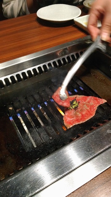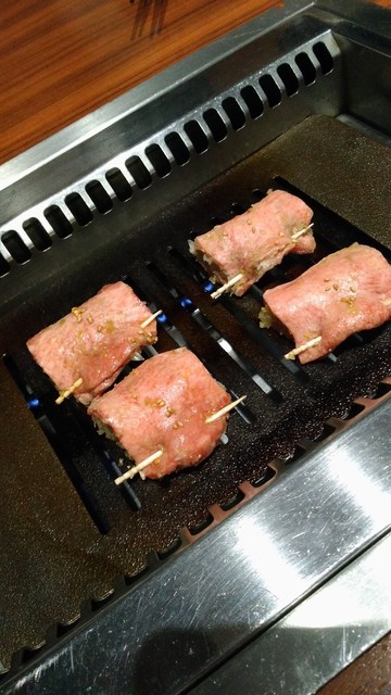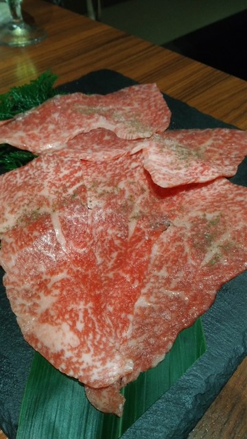 最初のお肉は、こちらのお店で名物となっている、ねぎ挟み極みタン塩。タン塩が大好きで、焼き肉を食べる時には、マストで頼むくらい、大好き。