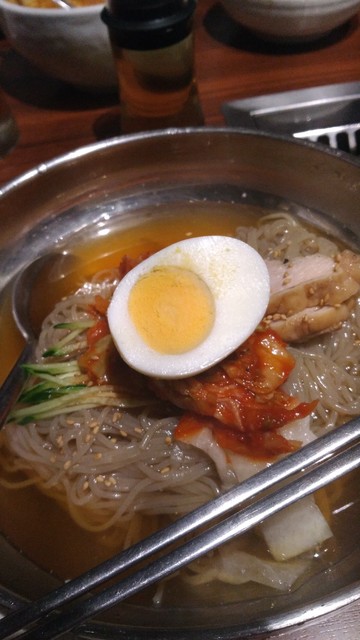さっぱりしたものが食べたかったので、〆のご飯は冷麺をチョイス。韓国風と盛岡風と選べたのですが、ここは韓国風をチョイス。