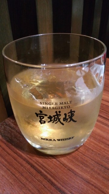 2杯目のアルコールは、宮城峡のロックで。うん、お肉にはこの味が合うかも。美味しいウィスキーです。珍しいしね。