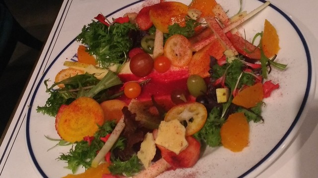 ビーツのソースはちょっと甘めで、赤いパウダーもビーツを粉砕したものだそうで、ビーツづくし。ビーツっていうと、どうしてもボルシチなどのスープをイメージしてしまうのですが、こうして、ビーツそのものを味わえるサラダって珍しいかも。
