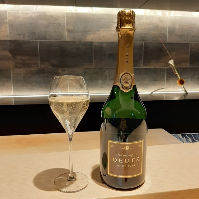 さて、乾杯はハウスシャンパーニュのドゥーツから。泡、美味しい~ゴクゴクいただくものではないけれど、ゴクゴクいただきたくなる美味しさ。お鮨とも相性か良さそう。