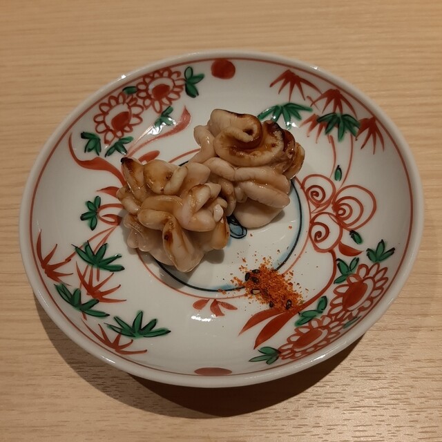 つぶ貝。元々600-700gの大きさだったそうで、こちらへ豊洲で買い付けされたものだそう。こりこりの食感が美味しくて、貝好きにはオススメの一品。噛むほどに味がしますね。