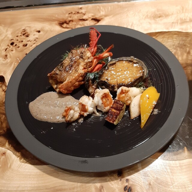 アワビもイセ海老も焼きをいれたことで、旨味が身に凝縮された感じです。バター醤油と弾力のあるアワビの身は、噛めば噛むほど味がでできました。海老が大好きなので、もちろんイセ海老も大好き。特製ソースのコクのある味と海老の身がよくマッチングしていて、もちろん、絶品であることはいうまでもありません。