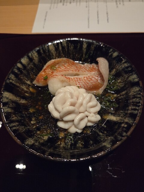 網走のキンキと白子のしゃぶしゃぶ。たまたまこの日は北海道産の食材が多いですが、全国から良いものを目利きして仕入れをされているそうです。 キンキも身がふっくらとして美味しい味つけでしたが、白子のクリーミーさが絶品。こんなに白子ってクリーミーだったかな?と思ってしまったくらい。