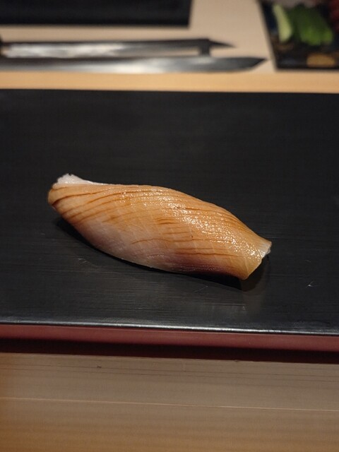 赤貝。一週間漬けて熟成させたもの。こちらのお店のネタは、いくつかは熟成させたものを出してくださいます。チョッとコリコリの食感が美味しい。