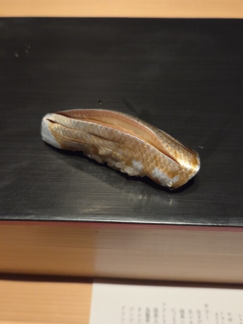 京都産鯵と熊本県天草のコハダ。ヒカリモノで綺麗。身が引き締まっていて食べやすい。
