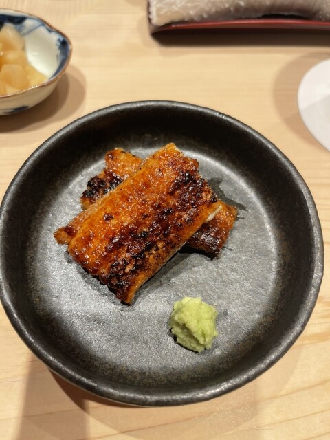 焼き物の鰻は、皮がパリパリに香ばしく焼かれ、中はふっくら。タレの甘辛さと焦げの香ばしさが絶妙で、そこにわさびを添えると一気に引き締まる。温かい煮物や揚げ出しなど、箸休めの一品も品格があり、食べ進めるほどにコースの流れの巧みさを感じる。