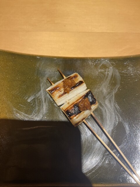 さらに印象深かったのは、間に挟まれる一品料理たち。蓮根の揚げ物はサクッと軽いのに旨味が濃く、食感が楽しい。にらやねぎなどの野菜串は、焼くことで甘味と香りがぐっと引き出され、鶏の旨味との心地よいリズムを作ってくれる。コースの流れが非常に美しく、まるでフレンチのような構成力を焼き鳥というジャンルの中で実現している。