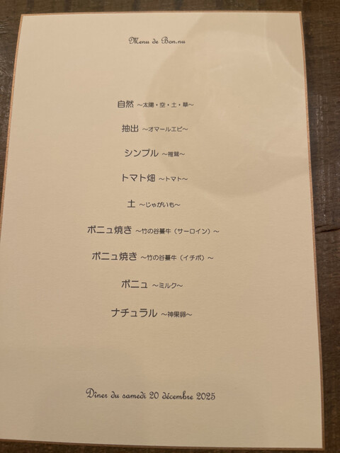 ボニュで体験したのは、これまで積み重ねてきたフレンチやイノベーティブというジャンルそのものを、静かに、しかし完全に無効化されるようなはじめての体験だった。