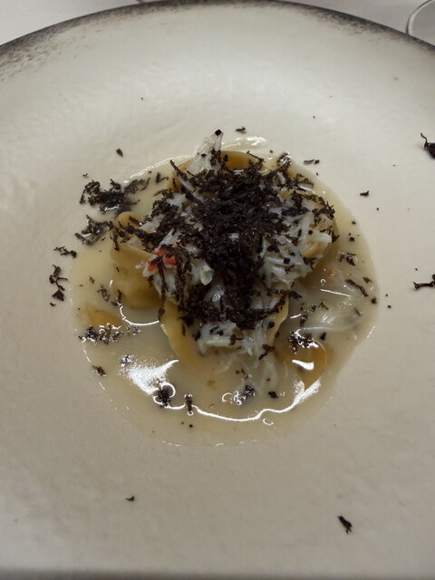 料理は想像をしっかり超えてきた。特にトマトのジュレを使ったカプレーゼは、素材の良さと発想の新しさが同居した一皿で、序盤から一気に引き込まれる。ラビオリはこれまで食べてきた中でもトップクラスの完成度で、記憶に残る味。