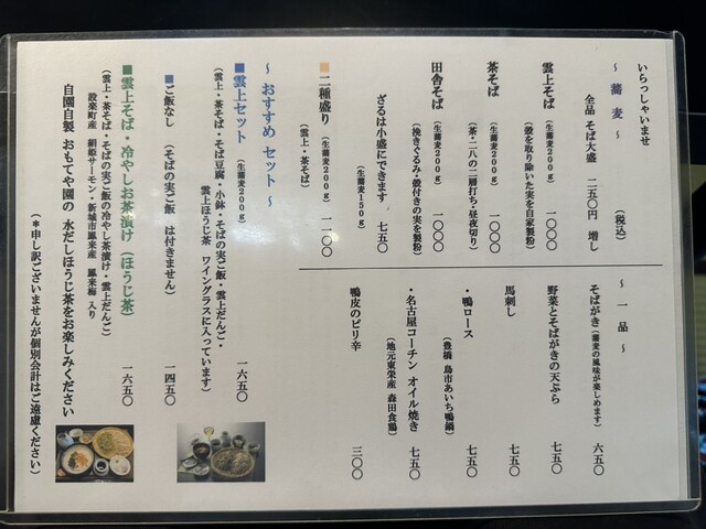 雲上蕎麦と茶蕎麦の2種盛りに蕎麦豆腐、そばの実ご飯に蕎麦団子などなど、アラカルトで蕎麦がきと野菜の天ぷら♪