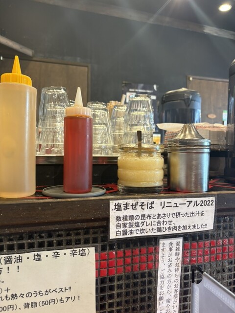 途中、カウンターにあるラー油と酢と黒胡椒を入れて食べるもの味変最高
