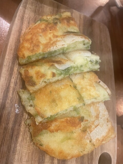 山芋とあおさのチヂミ。カリシャクでめちゃうま!